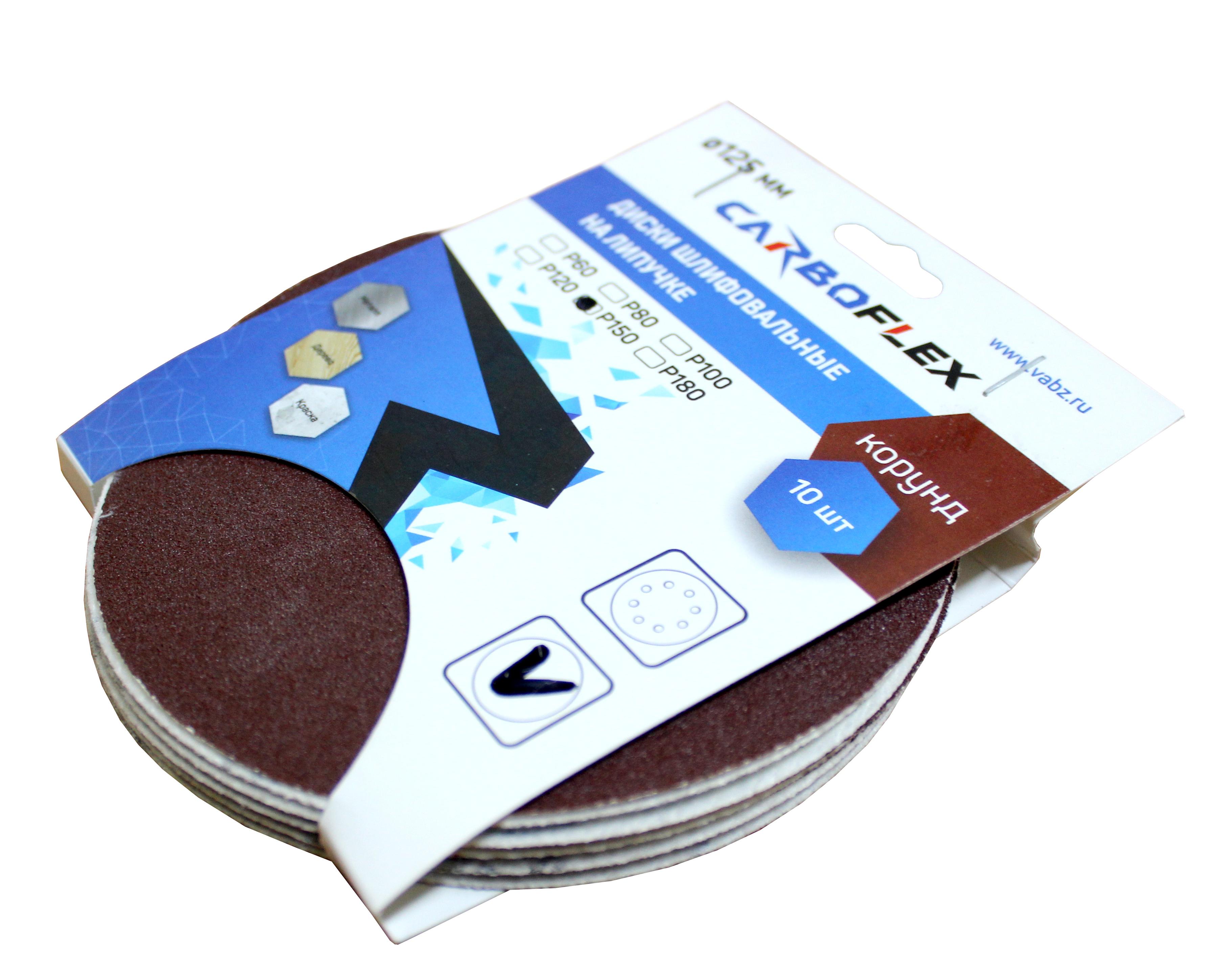 Диск шлифовальный на липучке Сarbofleх D125 10 шт представляет собой круг из специальной водостойкой бумаги, покрытый жидким бакелитом, который удерживает абразивный материал электрокорунд (оксид алюминия).
